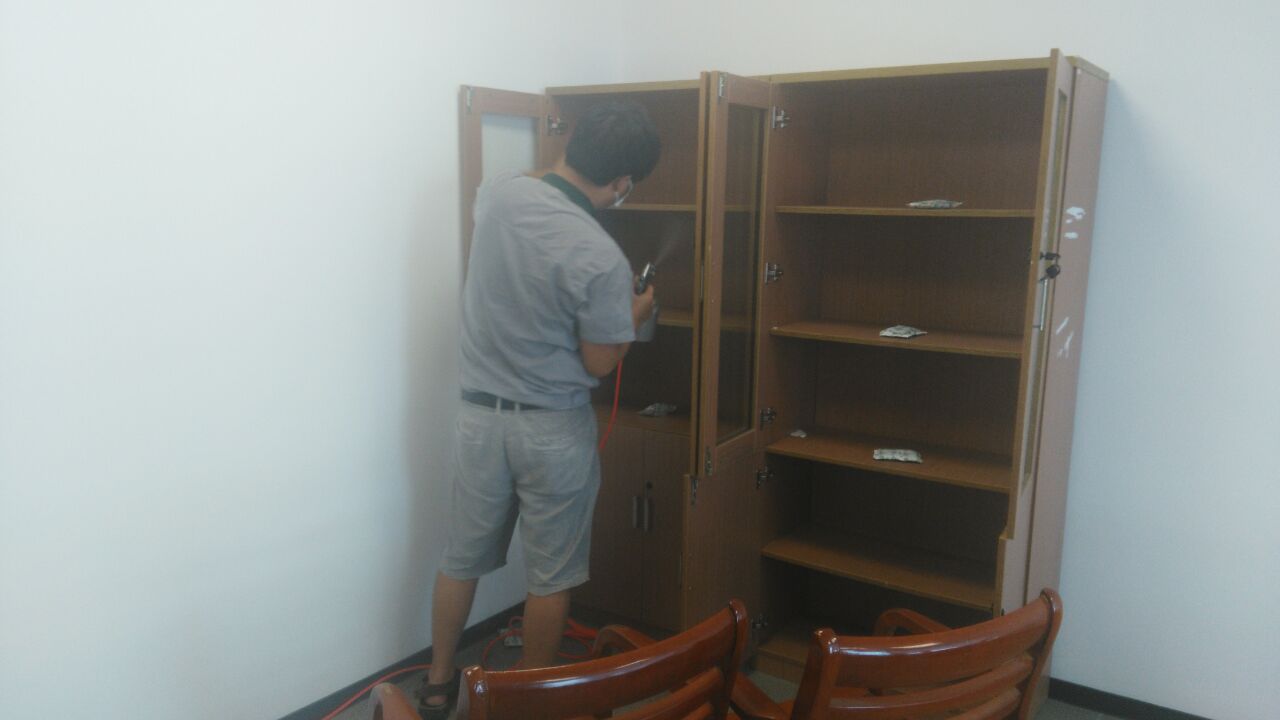 針對其結(jié)構(gòu)特點及污染情況,我公司技術(shù)及施工人員經(jīng)過認真考察,制訂了合格的施工方案,針對易散發(fā)甲醛等有害物質(zhì)的污染源,重點治理,對重新粉刷的墻面使用我公司研發(fā)的利純納米光觸媒進行甲醛清除,這些地方光照量較充足,便于光觸媒對甲醛的分解,對于刷漆的辦公家具、書桌、儲物柜、木門、地板等采用甲醛清除劑進行處理,針對不同污染物,做分別處理。經(jīng)過我公司重點治理,一周后復(fù)查結(jié)果各種有害物質(zhì)含量均已達到國家標準以內(nèi),各項指數(shù)均達標??蛻魡T工感覺氣味明顯消除,為業(yè)主清理甲醛,還顧客一個安全,健康的生活環(huán)境是我們?nèi)w工作人員的責任,下面為施工現(xiàn)場照片: